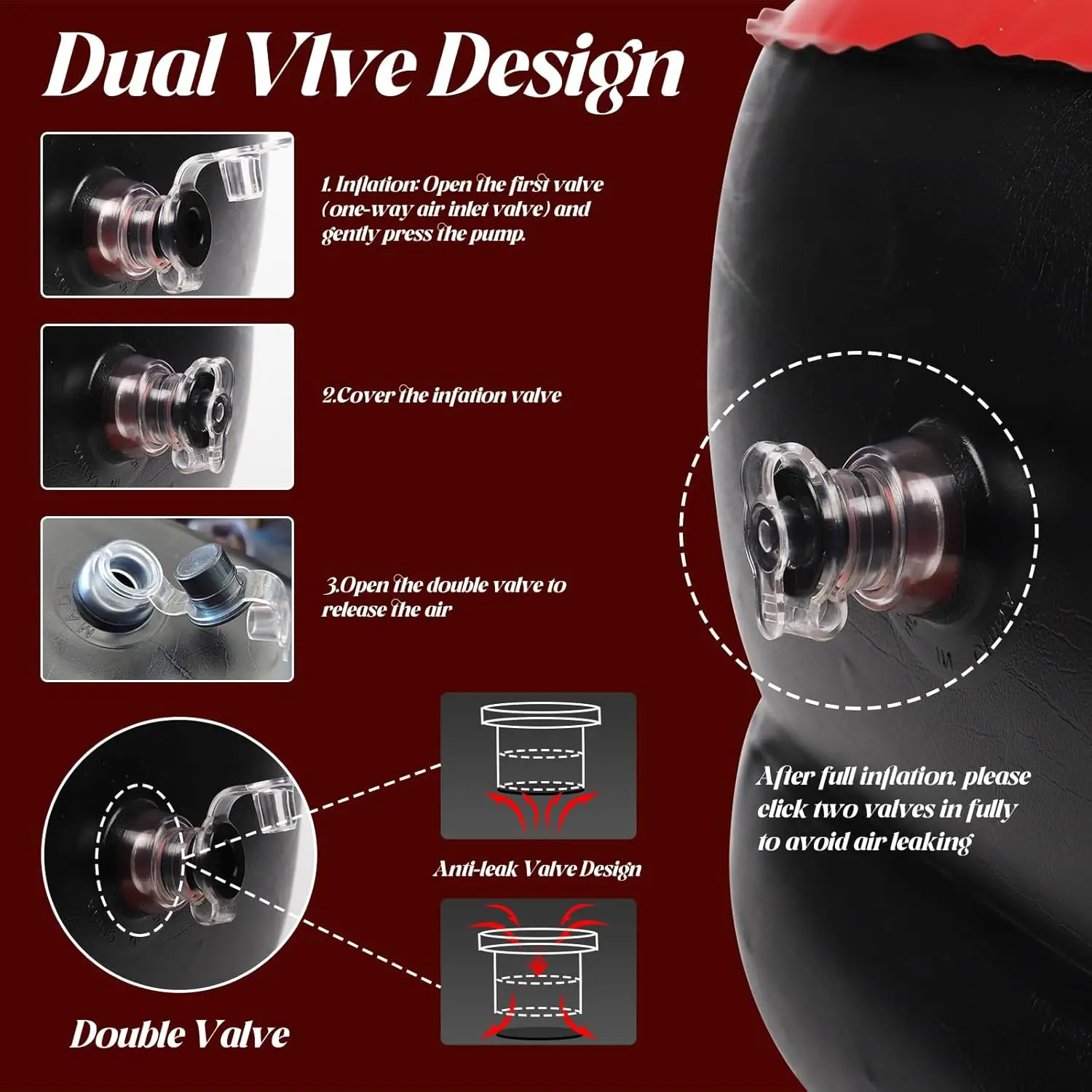 • 3-in-1 Inflatable Sex Pillow:This sex toy combines an inflatable support pillow, BDSM straps, and a suction-cup silicone dildo into a single unit, offering a variety of settings and scenarios for instant solo late-night masturbation or two-person sex. The mat’s center support features a deep hole compatible with most rods, vibrators, and dildos. Buckles on both sides allow for secure positioning, helping you explore the perfect position and spice up your solo masturbation routine