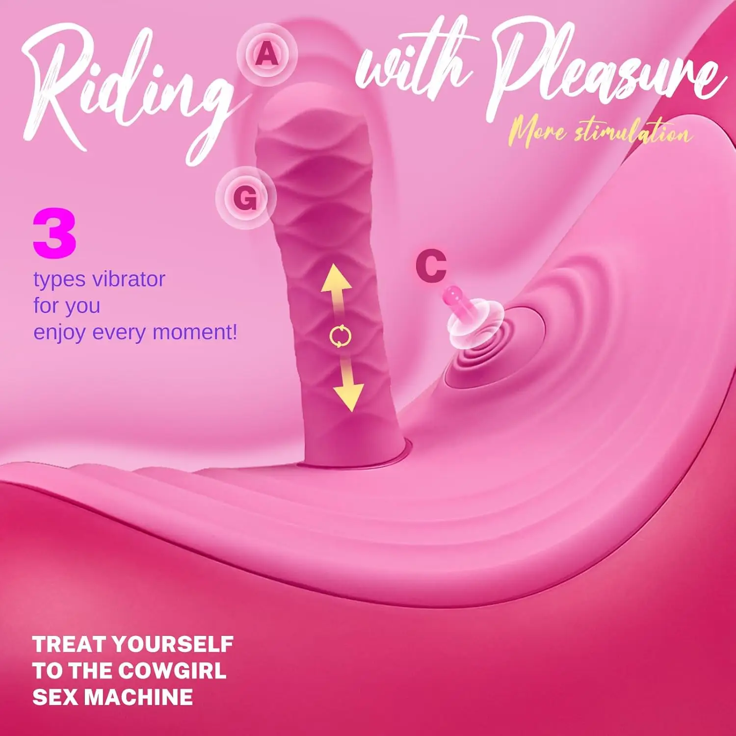 • Novelties Sit and Ride vibrator: Designed to deliver mind-blowing orgasms, with or without a partner Just sit, ride, and wiggle to unleash its orgasmic capabilities. 3 replacement dildos for your choice! and as you sit on the vibrator, it can stimulate more zones and be able to go deeper, making it easier for you to have more advanced pleasures.