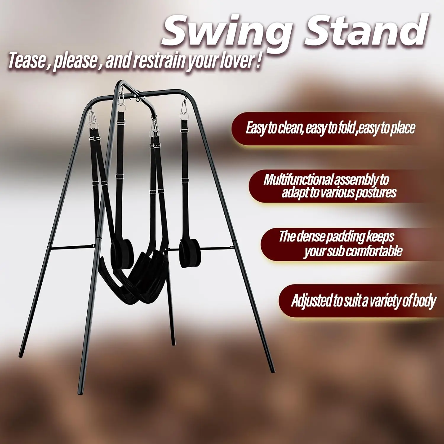 Sex Swing Set – Freestanding Steel Frame Sex Swing Stand with Adjustable Sex Sling for Adults Sex Positions, Fast Setup & Storage Sex Furniture BDSM Bondage Sex Toys, Holds up to 800 lbs